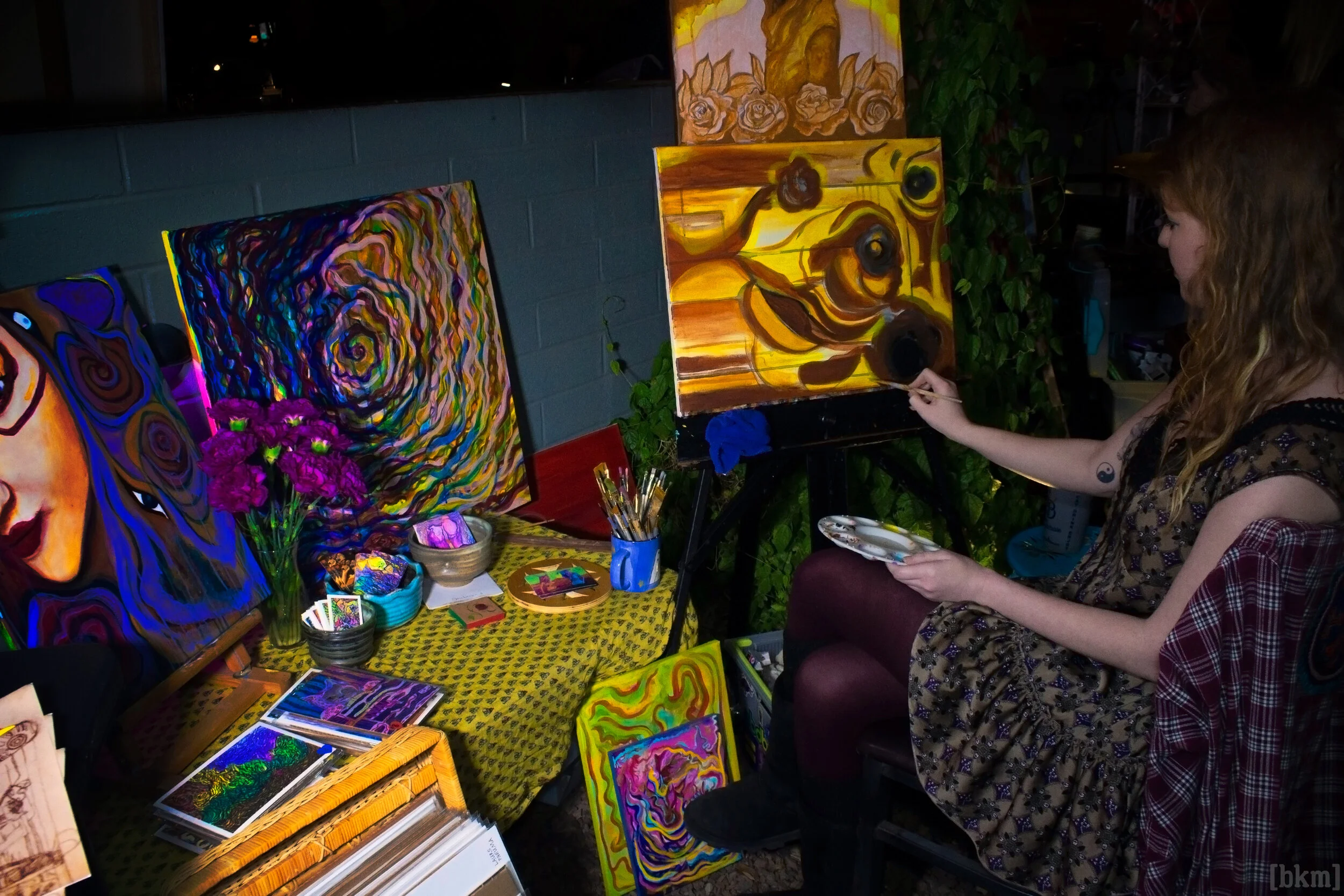 Art Night is a monthly art and music festival held at The Sazerac in downtown Phoenix. Hosted by Aimee Ink, Art Night is a spectacular showcase of the wildest inclinations of Arizona’s finest creators. A space open and free to be filled with the vibrant colors and flowing motions that fancy all its artist inhabitants.